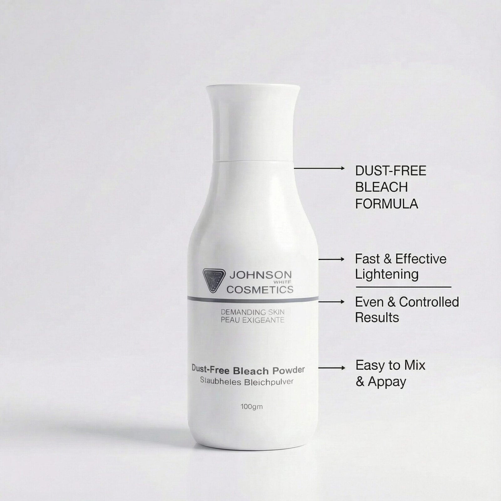 - Dust-Free Formula: Unlike traditional bleach powders, Johnson White Cosmetics Dust-Free Bleach Powder minimizes airborne particles for a cleaner, safer application.